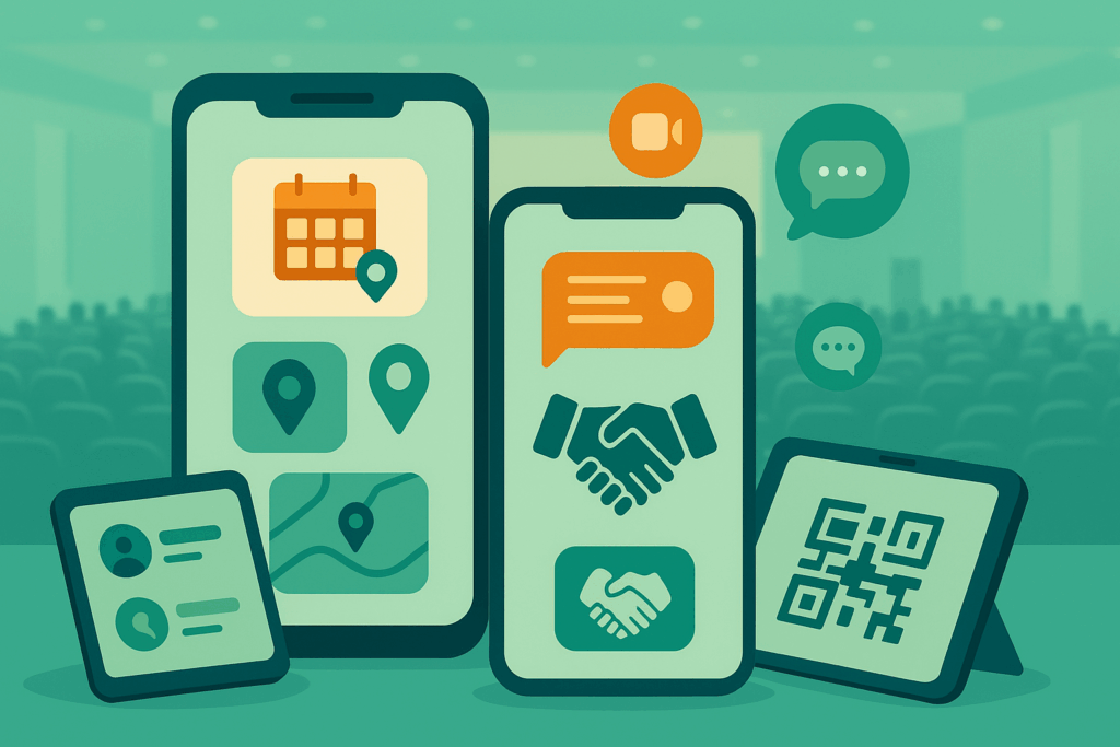 Interactive maps of STIAS highlight rooms, exhibitor stands, help desks, and lanyard return points. A quick-scan QR system speeds registration and session check-ins, while the “What’s On Now” tile shows live sessions and capacity indicators.
